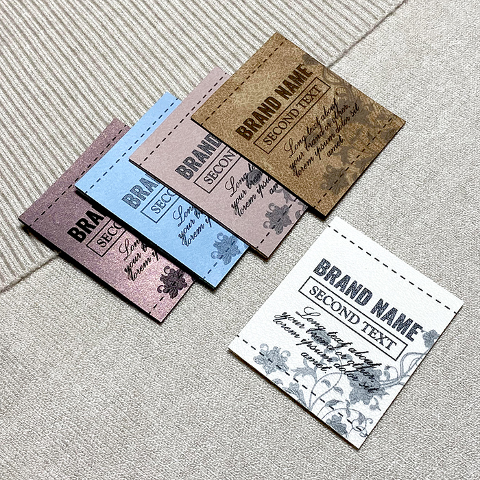 Personlig etikett EP-M141 gjord av konstläder för kläder, väskor, skor och olika klädtillbehör.
