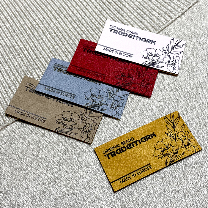 Denna Etikett i syntetiskt läder Model EP-M103 kan anpassas på bara några sekunder, mycket enkelt och snabbt med hjälp av den grafiska byggaren, där du kan välja färg på konstlädret, du kan infoga din egen logotyp eller någon annan grafik med en komplex design, och du kan anpassa etiketten med din egen text, till exempel ditt varumärke, en slogan, tillverkarens namn och det land där din produkt tillverkades.