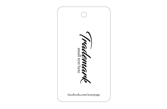 Varumärkesetikett tillverkad av blank vit kartong, inklusive tätning med snöre för att hänga kläder eller skor. Denna typ av hängetikett är tillverkad av högkvalitativa material, med hjälp av de mest avancerade teknikerna inom digital utskrift och efterbehandling.
