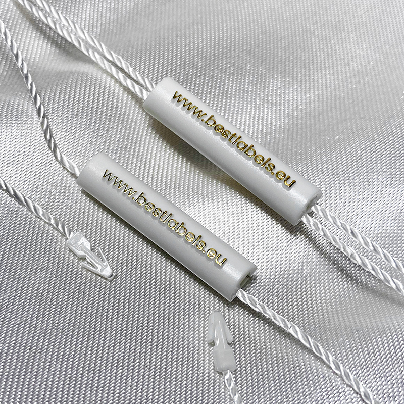 Plastförsegling ST-M239 med cylindrisk form och en attraktiv design och anpassad text på två sidor, lämplig för olika klädesplagg som jeans, byxor, dam- och herrkläder och många andra kläder, skor och väskor. Denna typ av tätning är tillverkad av högkvalitativa material, med hjälp av de mest avancerade teknikerna i området.
