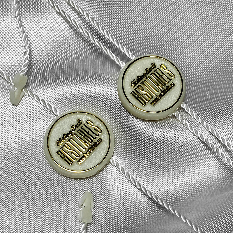 Plastförsegling ST-M82 med rund form, anpassad med en logotyp / emblem och text / kort uttryck, lämplig för olika produkter, såsom: kläder, skor, väskor, smycken och olika tillbehör. Denna typ av tätning är tillverkad av högkvalitativa material, med hjälp av de mest avancerade teknikerna i området.
